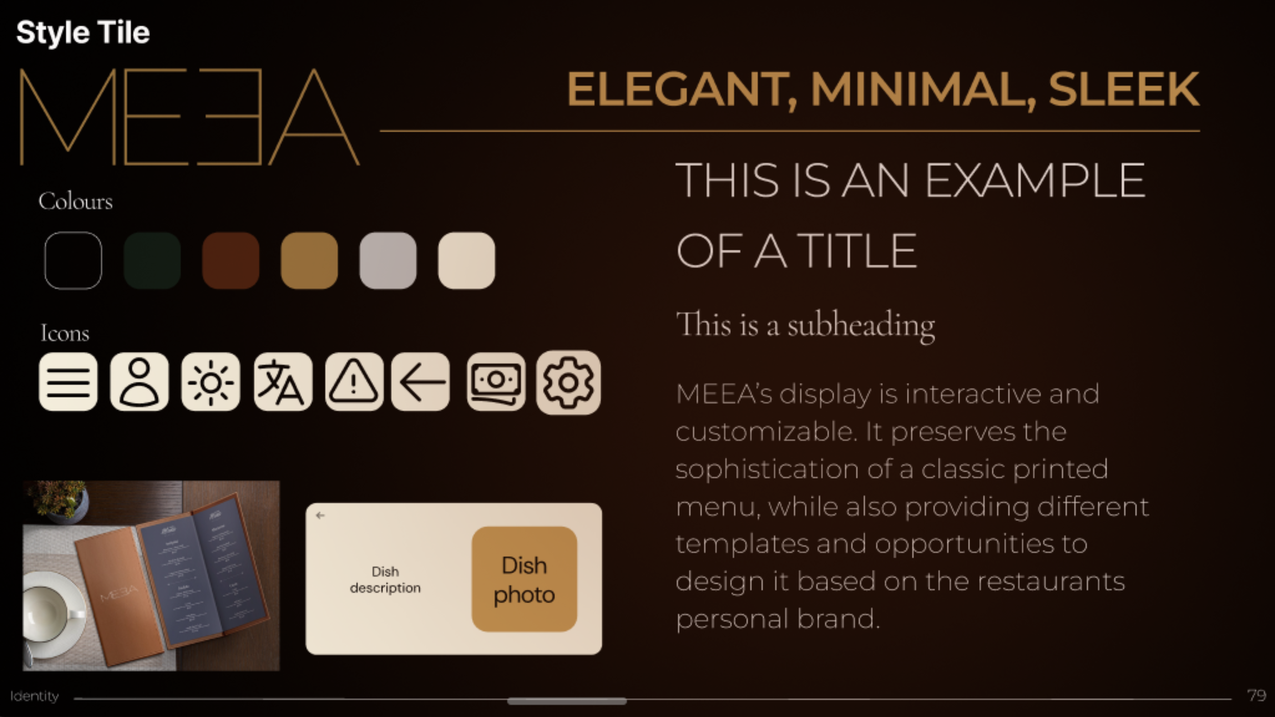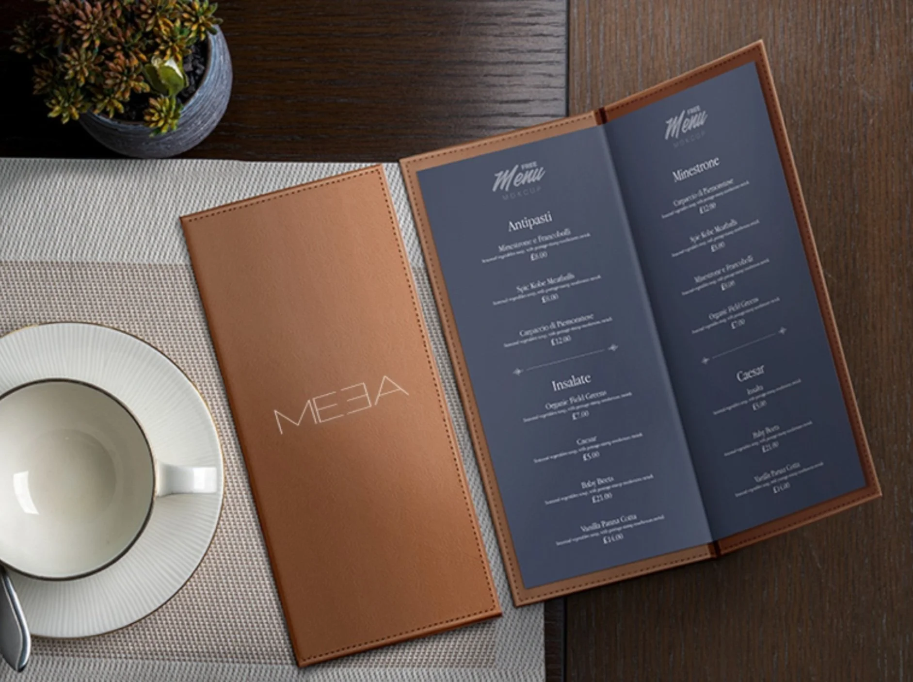 MEEA is an upgraded version of a physical restaurant menu, designed to provide a high-end, interactive dining experience. It retains the look and feel of a luxury leather-bound menu, but inside, it features an ultra-thin, high-resolution digital screen. This screen displays an interactive, customizable menu that enhances the dining experience while preserving the sophistication of a classic printed menu.